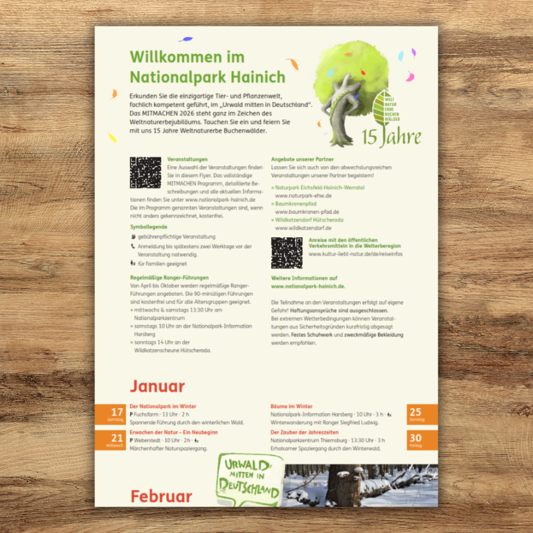 Bitte informieren Sie sich vorab im Internet, ob alle Veranstaltungen wie geplant durchgeführt werden können: www.nationalpark-hainich.de